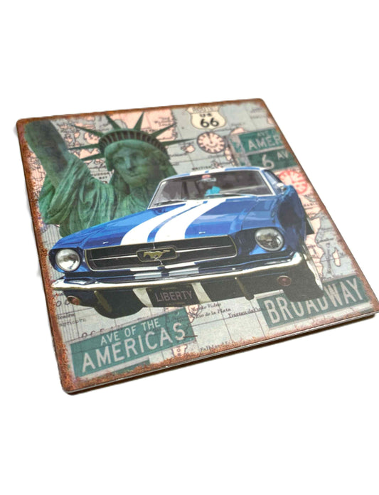 Laid back Blå ford Mustang, Plåtskylt 20*30