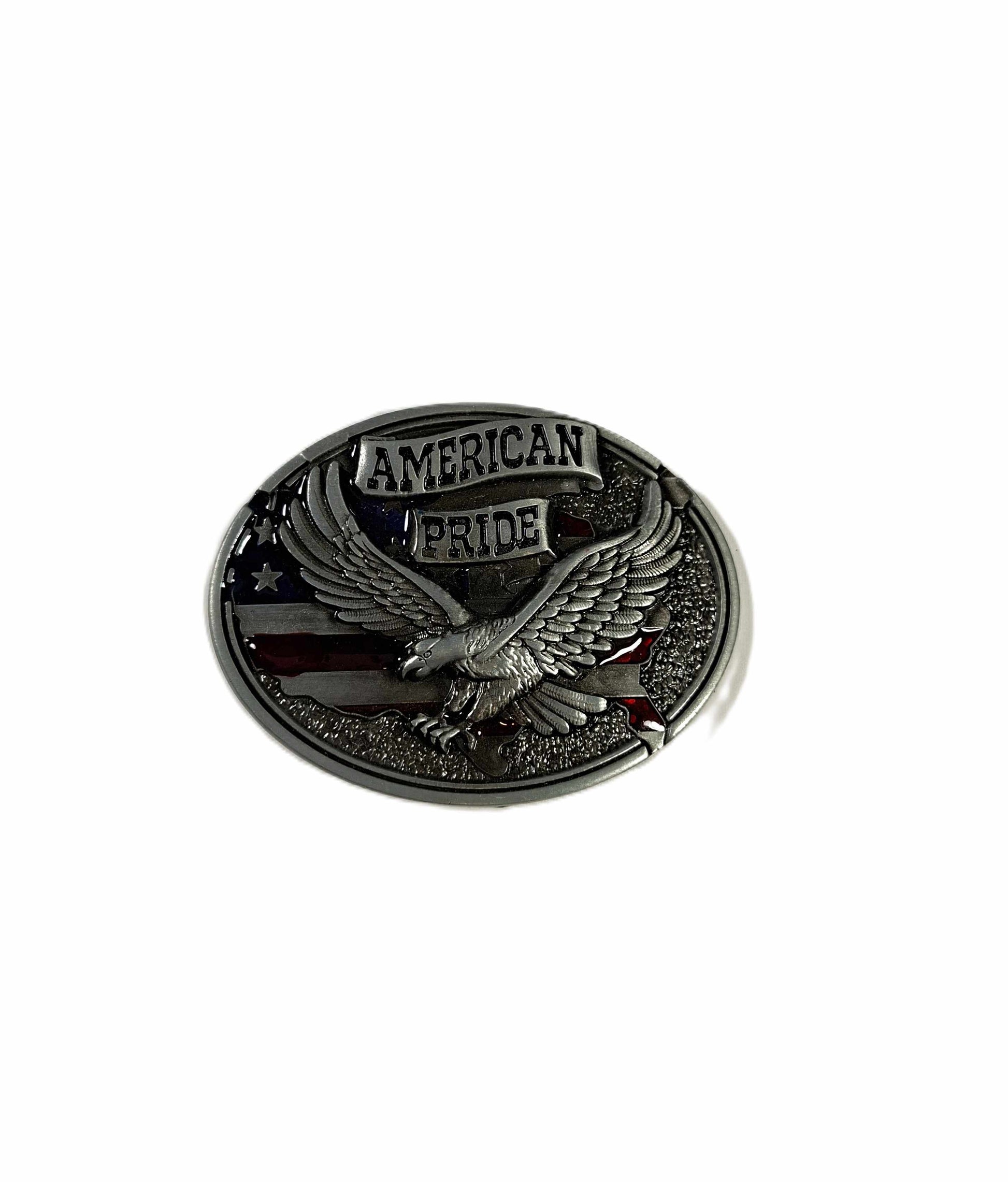 Skärpspänne "Buckle". Motiv; American Pride. Detta spänne levereras utan skärp men sätts enkelt fast på ett skärp med bredd ca 4cm/standard. Spännet är tillverkat i metall med en fräck design som definitivt drar blickarna åt sig.