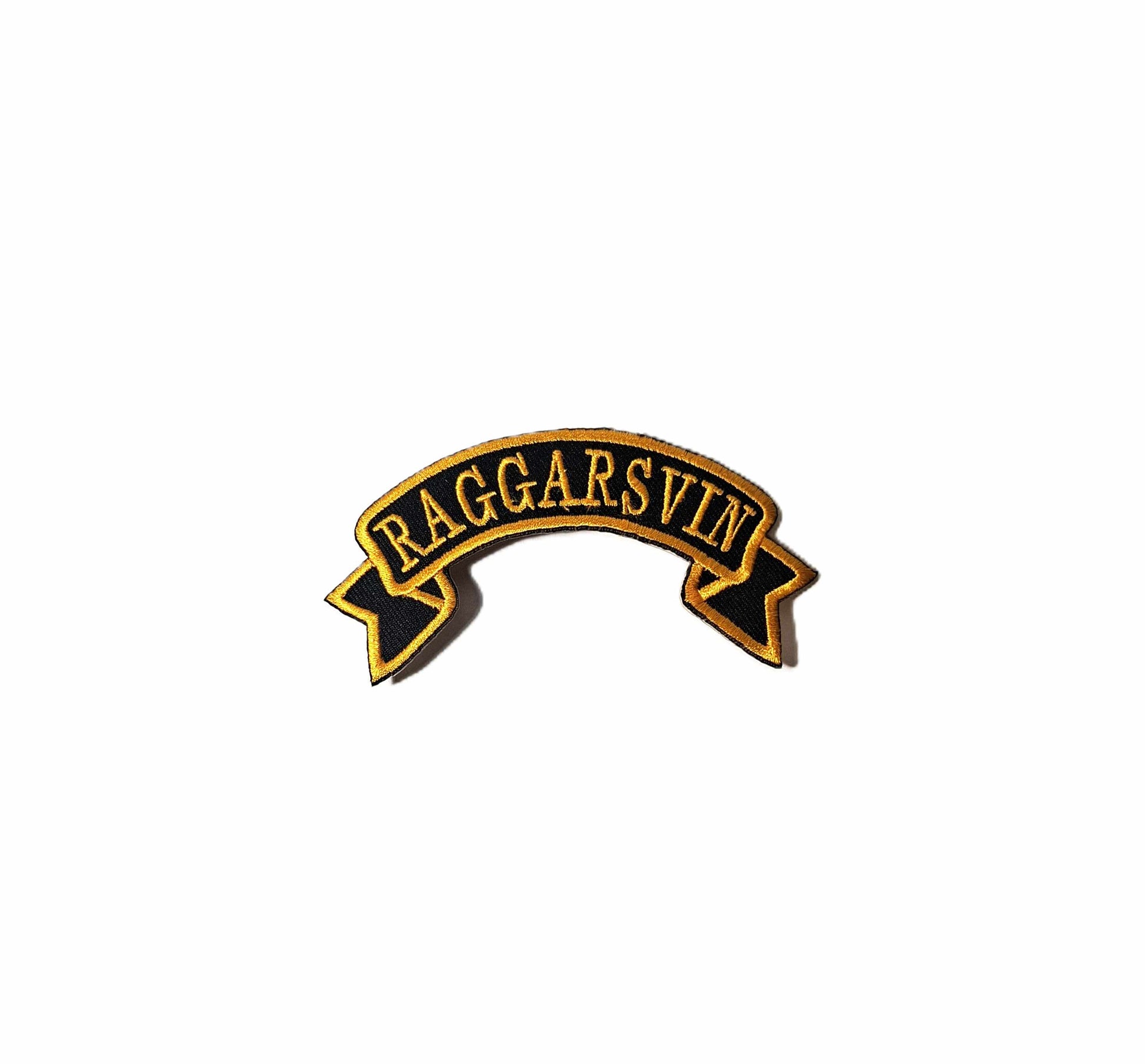 Broderat Tygmärke med motivet Raggarsvin- Banderoll.
